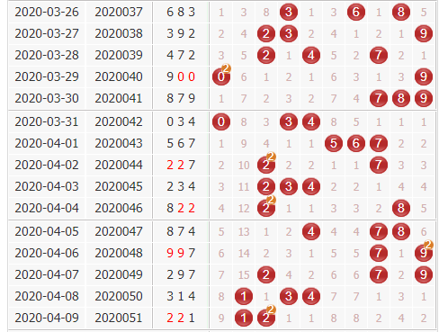 051期开奖号是221 221*3.14=693.94,胆码看369,独胆看9