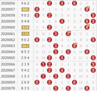 和尾上期是开出6,和尾连着两期是偶数和尾开出了,近期和尾其实是奇数和尾开出更强势,所以本期更看好奇数和尾的取值,尤其是重点看和尾1 4 5 9出。