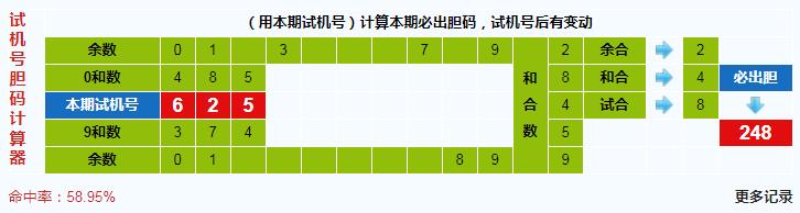 本期3d试机号胆码计算器给出结果:248