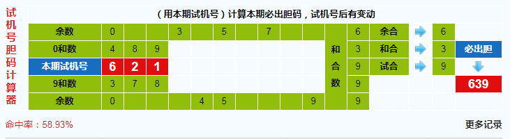 本期3d试机号胆码计算器给出结果:639