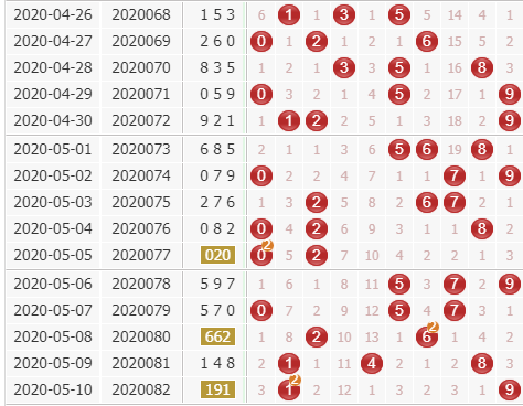082期开奖号是191 191*3.14=599.74,胆码看579,独胆看5