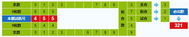 本期试机号胆码计算器推荐胆码:321