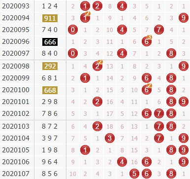 和尾上期是开出9,大和尾一直都是连开,而且紧紧都是挨着8和9的,本期和尾肯定也是在大和尾区域取值的,尤其是重点看和尾0 5 7 9出。