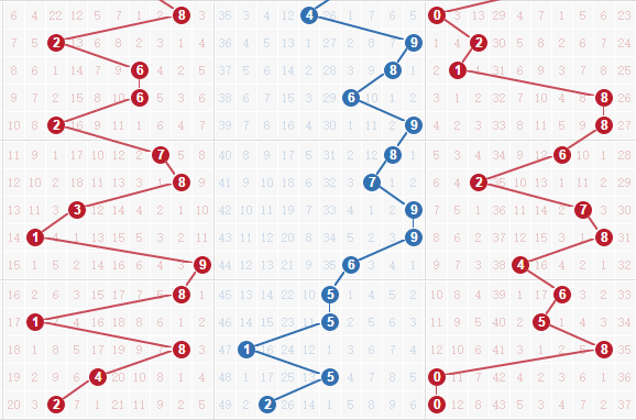 【012路分析】:上期是开出了220,2路号码就比较活跃了,几乎都有它,其实1路号码和0路号码也是相互拉扯,本期主看2路号码和1路号码的合体。
