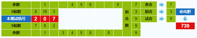 本期试机号胆码计算器推荐胆码:739