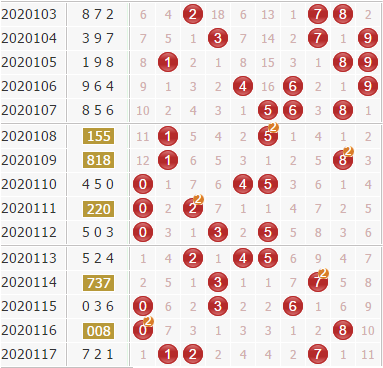 和尾上期是开出0,和尾走小了,不过一下子是开出了最小的和尾,之后和尾肯定是要回升的,看好和尾的走大,尤其是重点看和尾4 5 6 8出。