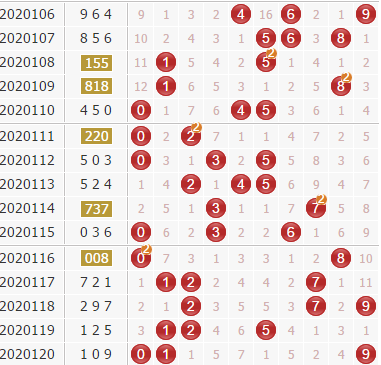 跨度是开出9,振幅是5,振幅一下子就走大了一些,看来接下来振幅也会适当的选择偏大的,本期要看好跨度的走小,可以多留意小跨度。