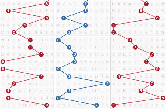【和值分析】:上期和值开出15点,从走势来看,和值上升的意愿非常强烈,由于近期小和值出现的频率非常高,大和值目前表现黯然失色了,本期建议看好和值7、12、17。