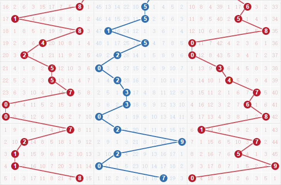 个位分析:个位上是0路号码的开出,而且0路号码还在连开,连开能力也不弱,本期继续看好0路号码,小防1路号码开出。