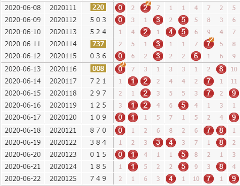 上期开出110路号码,近期2路和1路号争相突出表现,各自都有同路号的精彩开出,由于近期0路号码走势相对低调,一直没有和1路和2路来争锋,暂时还是保持低调的辅助作用,现在关注0路号稳定开出。