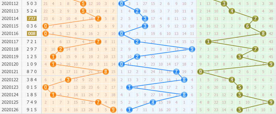 ③012路分析:为0路出1个,1路出1个,2路出1个;本期看好1路球出号,关注4码,综合分析看好221 011 112 121路组合出号。