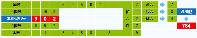 本期胆码计算器与试机号没有重合的号码。结合近期试机号命中开奖号走势图来看,本期试机号中的0号球和2号球在前一期的试机号中都有出现。其中2号球是近期冷号,目前已经遗漏11期了,目前遗漏期数最高的号码就是2号球,建议多加留意下,破冰的几率会越来越大。