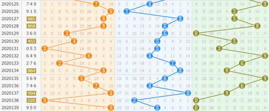 ③012路分析:为0路出2个,1路出0个,2路出2个;本期看好1路球出号,关注4码,综合分析看好011 221 211 001路组合出号。