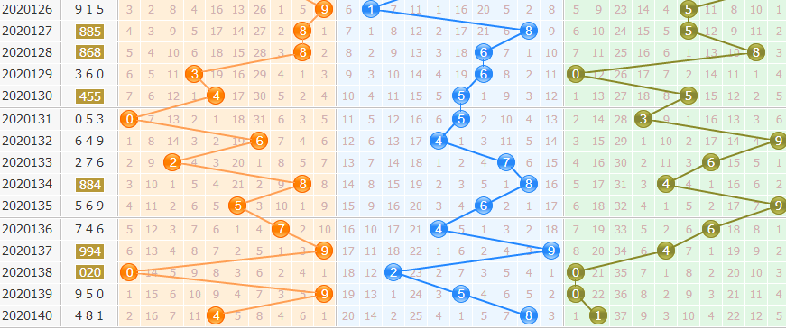 跨度预测:上期跨度开出07,大和值连续开出两期,且都是奇数和值,后期预计跨度走向应该会转向到中小区域,本期具体推荐跨度范围:2—6