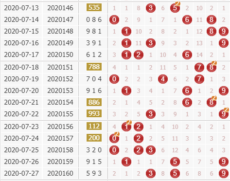 上期开出号码593,大大小、奇奇奇、质合质的组六形态,结合走势来看,上期出现了两个号码重复卡出的现象,目前剩余3号还处于单开模式,本期对于上期奖号3号继续关注,其次走势上现在空缺偏大,多有号码走温走冷的情况出现,本期注意冷温号回防。