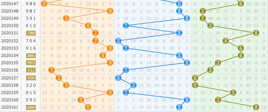 ③012路分析:为0路出1个,1路出0个,2路出2个;本期看好0路球出号,关注6码,综合分析看好001 002 121 201路组合出号。