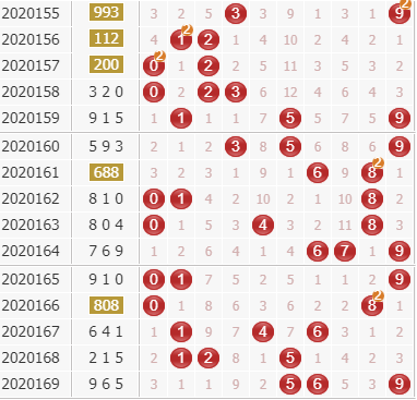 169期开奖号是965 965*3.14=3030.1,胆码看013,独胆看3