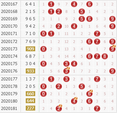 根据近期的号码走势来看,0号球当前就是小间隔的,号码热开居多的,当前也是有两期没有开出了,本期也要看好0号球的热开;5号球之前是一个冷号开出,但是号码已经是有回暖的趋势了,本期也要看好5号球;8号球有七期没有开出,作为冷号,本期也要看好它的表现。