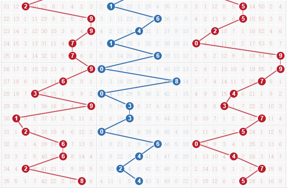 个位分析:个位开出了一个2路号码的开出,按照这个走势来看,接下来就要看好0路号码的开出;不过2路号码在个位上也比较强势,小防连开。