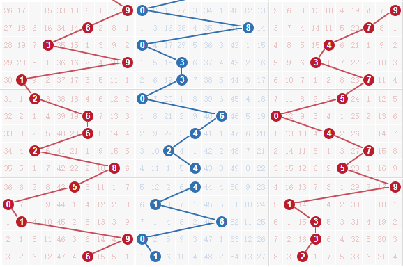 和值走向:和值开出了9,小和值开出,不过近期和值也是集中在中小和值的边界,整体来看,和值还是偏小一些的,本期也要看好小和值。