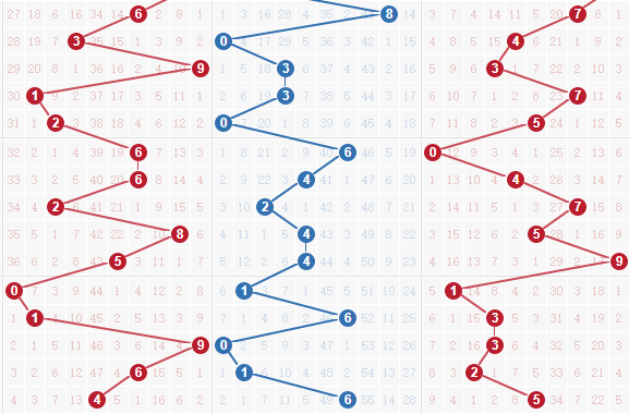 【十位分析】:十位是开出了6号球,0路号码的开出,十位上0路号码都是有连开,之前都是有两期出号的,继续看好0路号码。