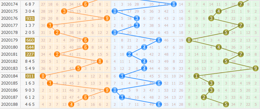 和值预测:上期和值开出15,大号和值出现,后期预计出号位置会再次回弹,中小和值本期出现几率比较大,苏会文本期参考号码走势分析,重点推荐和值范围:11—19