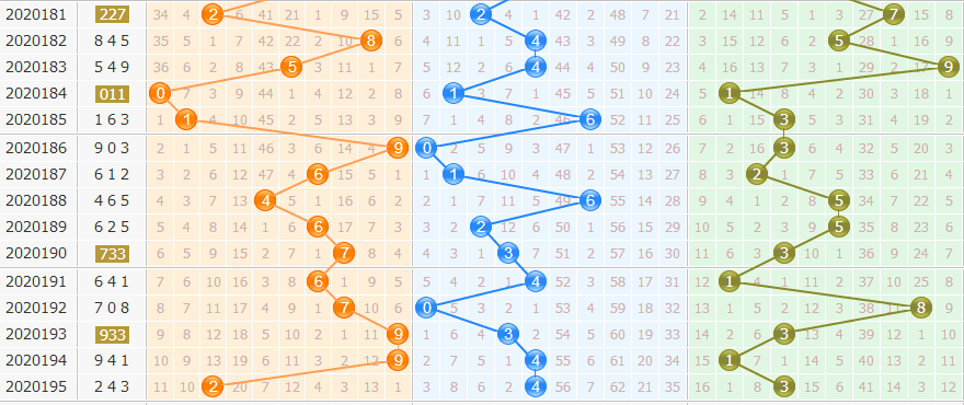 ③012路分析:为0路出1个,1路出1个,2路出1个;本期看好1路球出号,关注2码,综合分析看好002 111 210 002路组合出号。