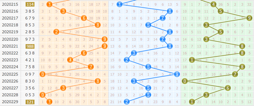 跨度预测:上期跨度开出01,小跨度号码出现,奇数跨度目前连续开出三期,后期大家可以重点关注出号位置大幅度右移,苏会文本期参考号码走势分析,重点推荐本期跨度范围:3—7