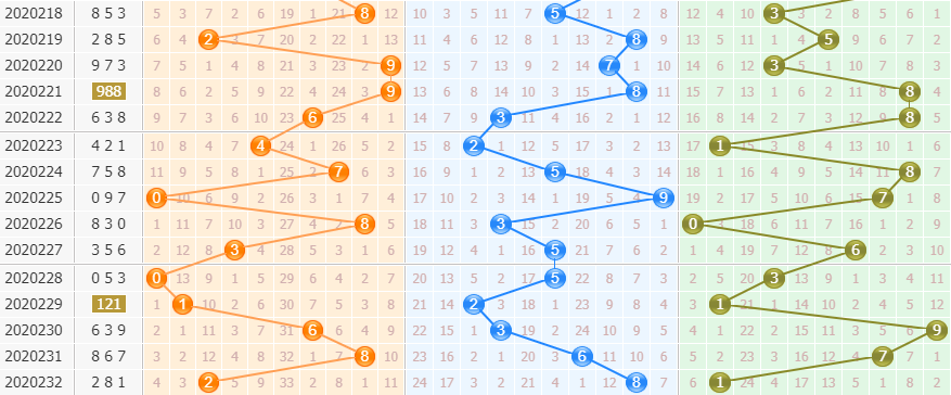 ③012路分析:为0路出0个,1路出1个,2路出2个;本期看好2路球出号,关注2码,综合分析看好122 002 111 002路组合出号。