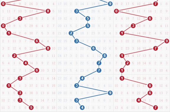 【十位】:上期开出十位4号,十位上近5期呈现一个冷-温-冷-热-热的变化趋势,近期十位上走势冷热交替,走势上前区空缺极大,建议严防1、2。