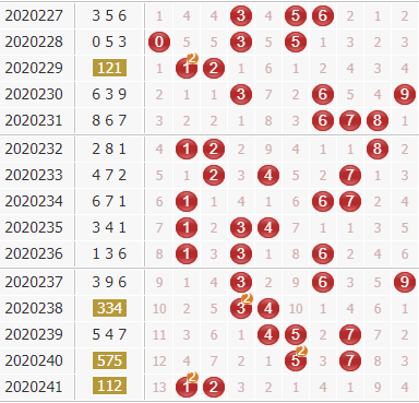 241期开奖号是112 112*3.14=351.68,胆码看135,独胆看3