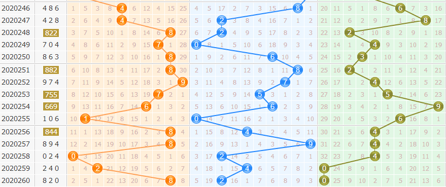②奇偶分析:形态为3偶0奇,本期看好奇数出号,判断主要形态为:重点1偶2奇。