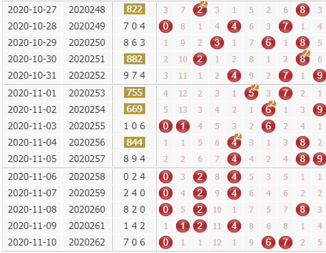 262期开奖号是706 706*3.14=2216.84,胆码看126,独胆看6