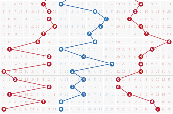 和值走向:和值开出了7,和值还是有些来回移动,是在折返的开出,不过当前和值还是在走大开出,本期继续关注中大和值。