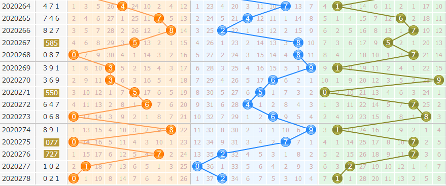 和值分析:上期和值开出03,小和值3出现两期,后期预计出号位置会大幅度右移,看好中大号和值出现,苏会文本期重点推荐和值范围:10—18
