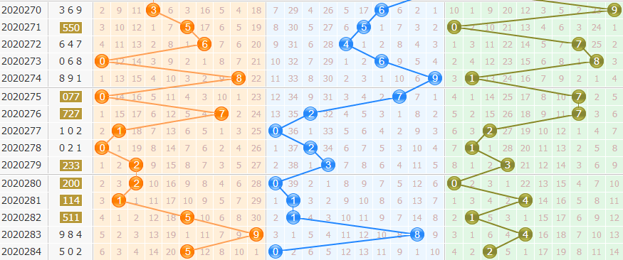 和值分析:上期和值开出07,近期的和值走势比较分散,后期预计出号位置会再次反弹,苏会文本期参考号码走势分析,重点推荐和值范围:10—19