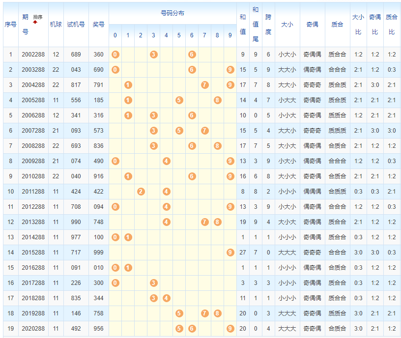 福彩3D历年第288期同期奖号为360 690 791 185 316 573 836 490 916 422 094 748 100 999 010 300 344 758 956