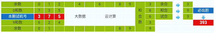 本期3d试机号开出的号码是375,胆码计算器开出的号码是393,重合一个号码3。结合近期试机号命中开奖号走势图来看,近期试机号命中开奖号的几率处于上升阶段,目前连续两期都有命中的试机号,并且连续两期命中的试机号数量为2个,势头旺盛,本期应该多加关注试机号号码,尤其是与胆码计算器重合的3号球。