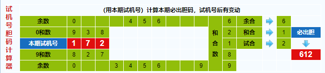 今日3d试机号的开奖号码是172,试机号胆码计算器开出看了612,从试机号跟胆码计算器的开奖号来看,都有1号球跟2号球,1号球目前是隔了1期,近期预计会升温,本期需要关注;2号球目前是隔了2期,本期是一个斜连号,近期的2号球比较热,本期需要关注;另外6号球目前是隔了3期,近15期里几乎在隔了3期就开出来,所以本期需要关注;7号球是上期的开奖号码,也就是重复号,近期重复号开出的比较频繁,本期需要关注。