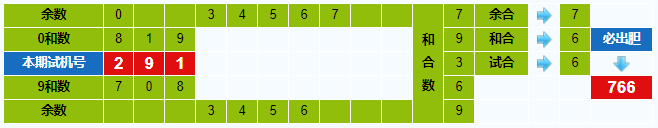本期3d试机号开出的号码是291,胆码计算器开出的号码是766,没有重合的号码。结合近期试机号命中开奖号走势图来看,近期试机号命中开奖号的几率在走低后上升,目前连续两期出现命中的号码,本期预计不难有一个号码击中开奖号,建议重点关注重复号2。