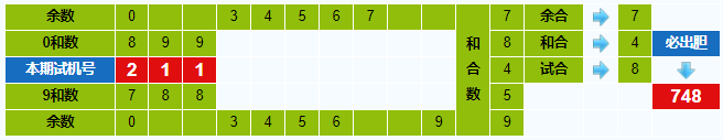 本期3d试机号开出的号码是211,胆码计算器开出的号码是748,没有重合的号码。结合近期试机号命中开奖号走势图来看,近期试机号命中开奖号的几率持续上升,近三期各出现一个命中的试机号,本期再次开出2号球,建议小防一下。