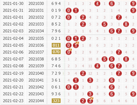上期开出020路号码323,近5期走势上0路号码出现了持续性的高强度爆发,连续4期都有0路号的同路号出现,在高度爆发期间,本期对0路号仍旧保持警惕,此外两期没有出现的1路号注意防范。