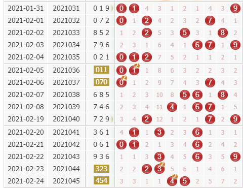 045期开奖号是454 454*3.14=1425.56,胆码看124,独胆看1