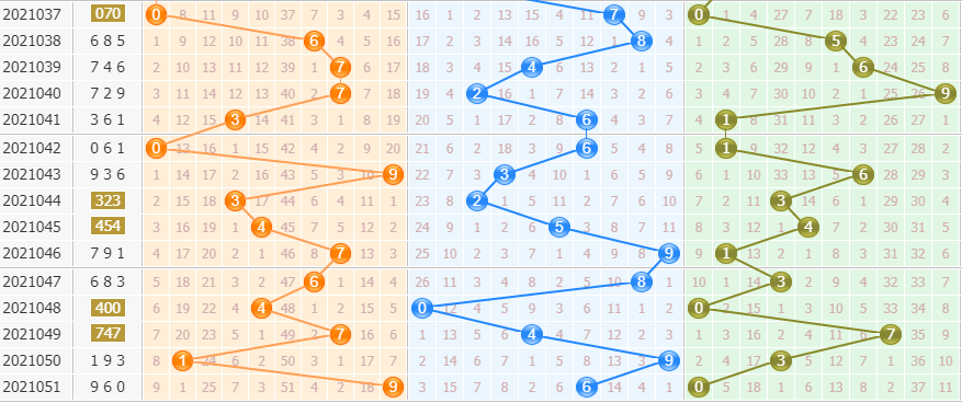 和值分析:上期和值开出15,近期的和值走势变动比较小,后期预计和值走势可能会继续往大走,苏会文本期参考号码走势分析,重点推荐和值范围:11—20