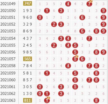 063期开奖号是811 811*3.14=2546.54,胆码看245,独胆看5