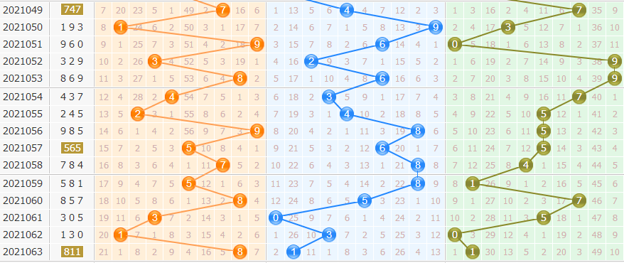 跨度分析:上期开出跨度7,近期的跨度走势变动比较大,号码走势呈现大小交替出现,后期预计跨度走势转小,苏会文本期参考号码走势分析,重点推荐跨度范围:3—7