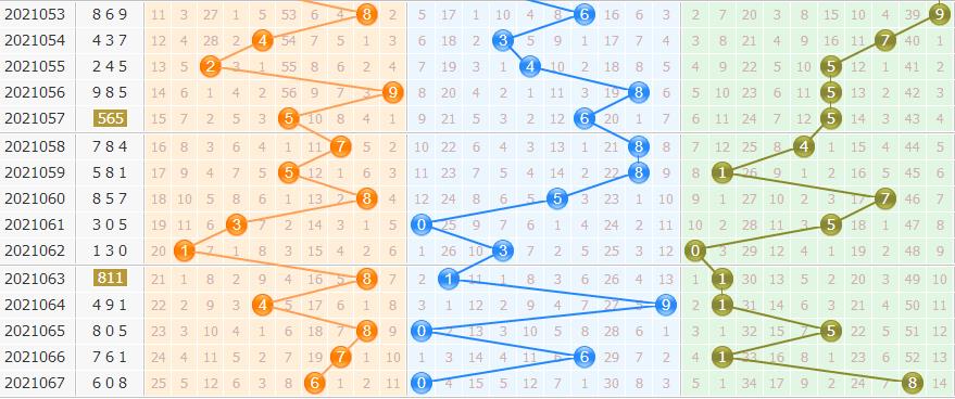 和值分析:上期和值开出14,从近期的和值走势来看,几乎是没有变动的,光是和值14就已经出现了三次,后期大家可以重点关注出号位置右移,苏会文本期重点推荐和值范围:11—19