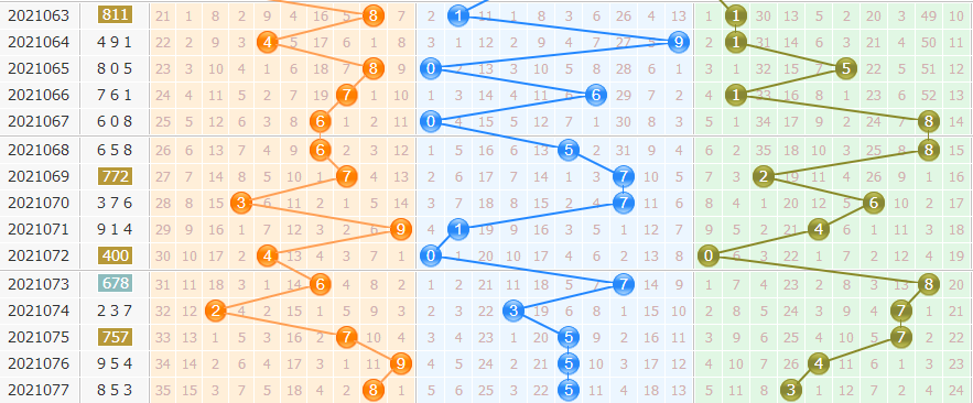 跨度分析:上期跨度开出05,跨度5连续开出,后期大家可以重点关注中小跨度号码出现,苏会文本期根据号码走势分析,重点推荐跨度范围:2—7