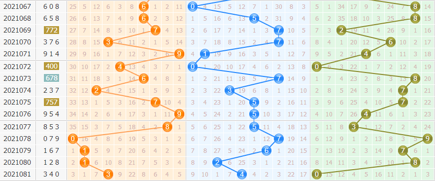 跨度分析:上期跨度开出04,前期跨度连续开出五期之后终于是转向了小跨度范围,后期建议大家重点关注大奇数跨度出现,本期重点推荐跨度范围:3—8