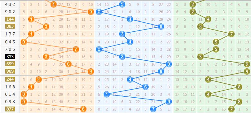 【百位】:上期开出8号,百位上近5期呈现一个温-温-温-热-冷的变化趋势,在近5期出号表现中,温号带动着热号开出,走势上冷码陆续解冻,本期看好3、4。